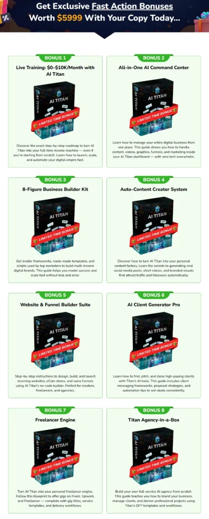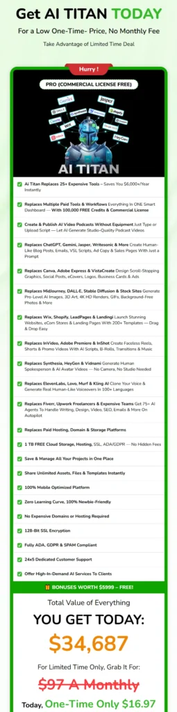 AI Titan is a powerful, all-in-one AI marketing automation system. It’s affordable, easy to use, and well-suited for beginners as well as experienced marketers who want to automate traffic, content, and income — all without ads or technical complexity.