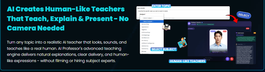 In short, AI Professor turns the complex task of teaching and content creation into a simple AI-powered solution — helping you create professional, engaging educational content faster, easier, and smarter than ever before.