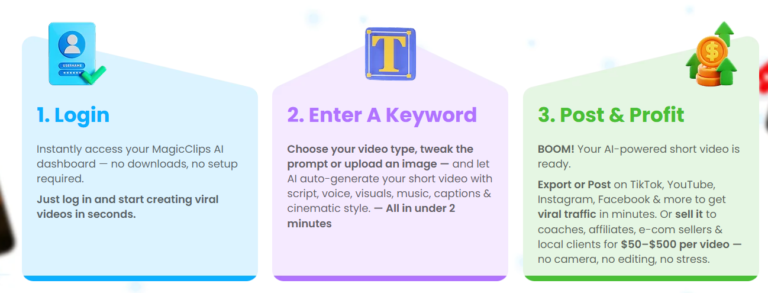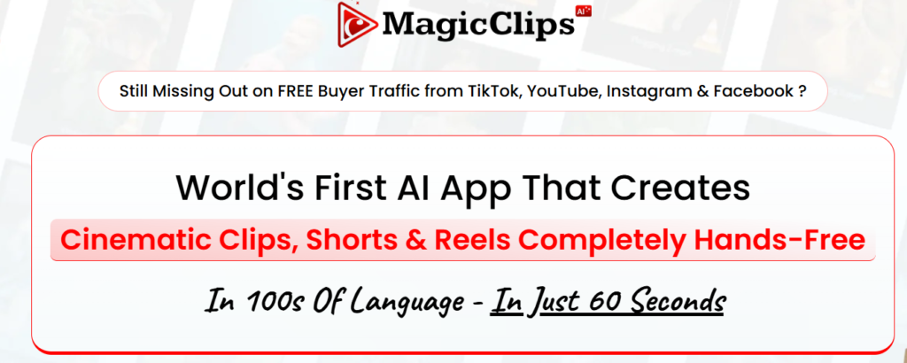 In short, Magic Clips AI gives you a fast, scalable way to create unlimited short-form video content that attracts traffic, builds authority, and drives conversions — even if you’re a complete beginner.”