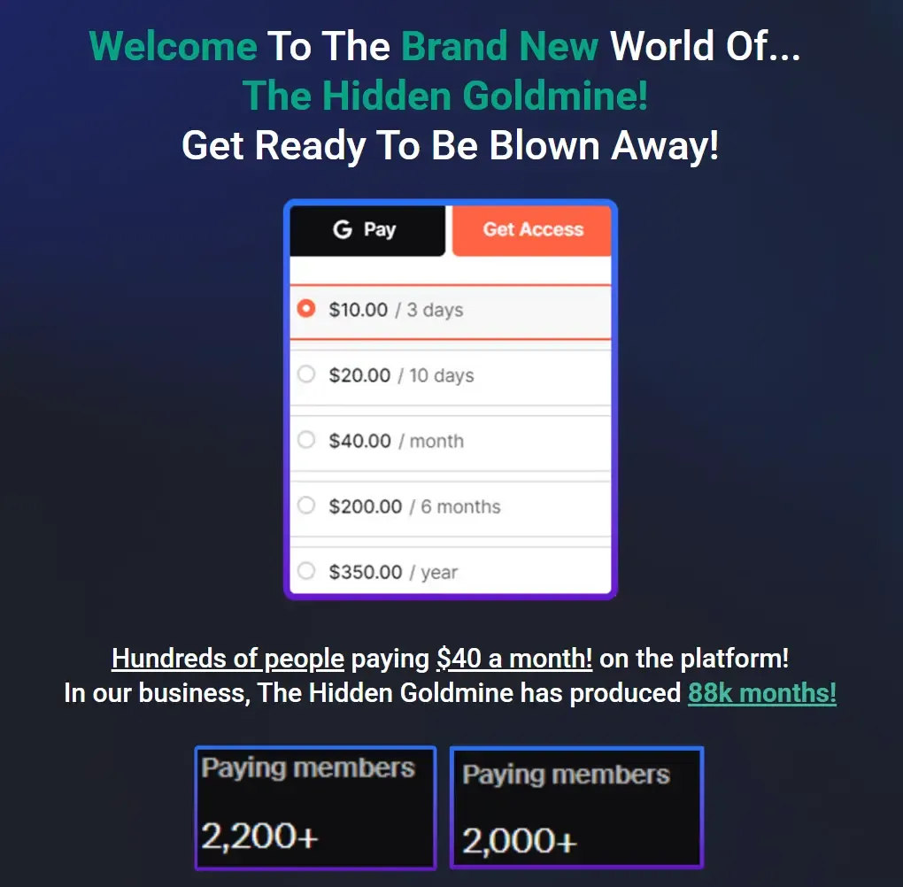 Now let’s move on to the next section of The Hidden Goldmine Review, where I will share detailed information about its features, pricing, and upgrade details.”